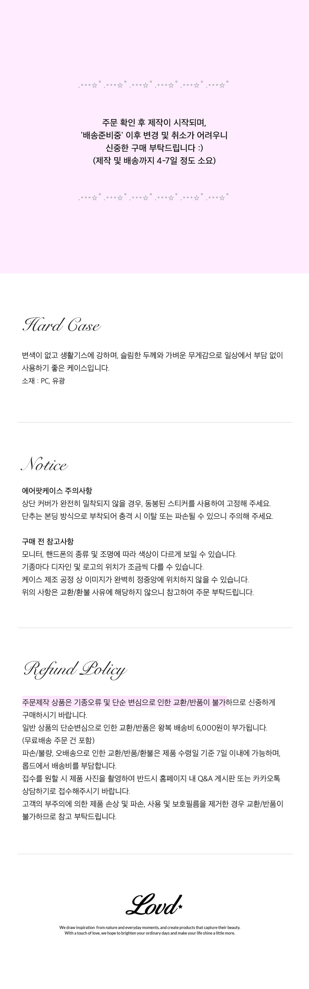 1:1 주문제작 상품으로 배송준비중 취소/변경이 불가합니다. (제작기간 5-7일 소요)