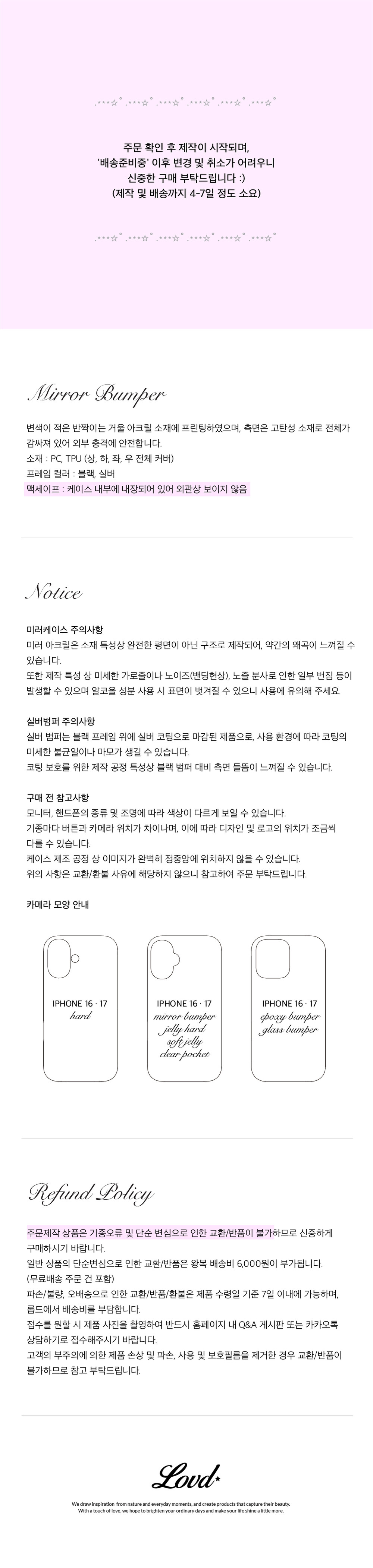 1:1 주문제작 상품으로 배송준비중 취소/변경이 불가합니다. (제작기간 4-7일 소요)