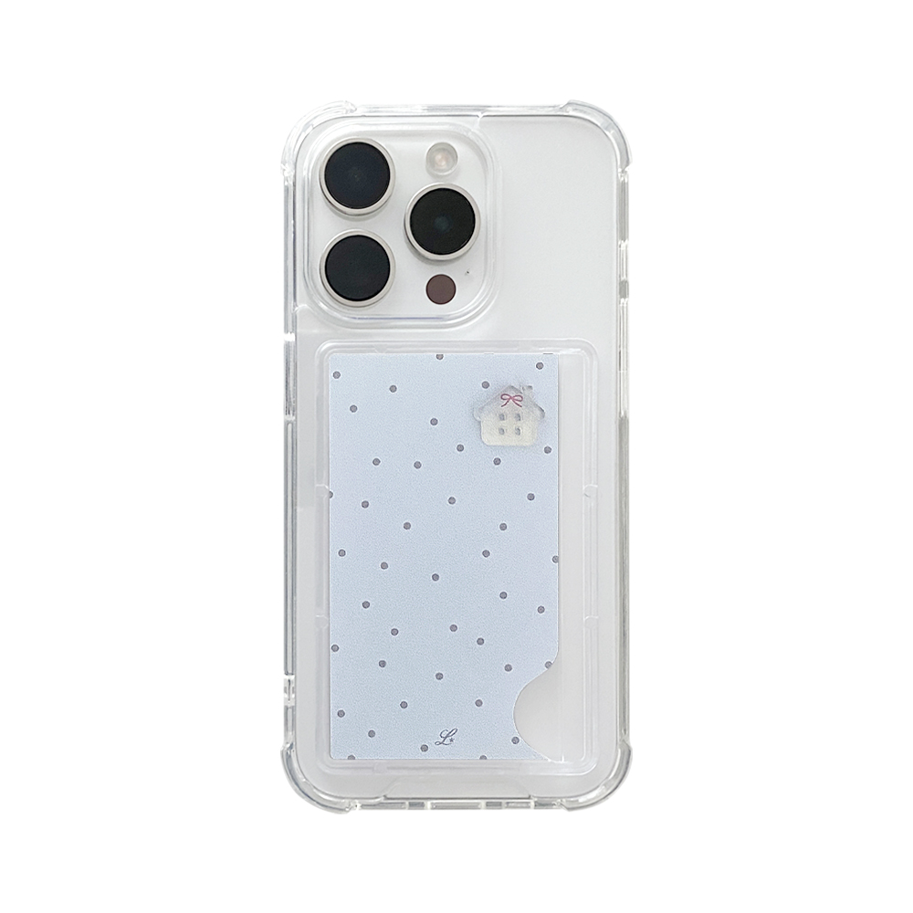 RIBBON COTTAGE PHONE CASE BLUE (clear pocket)