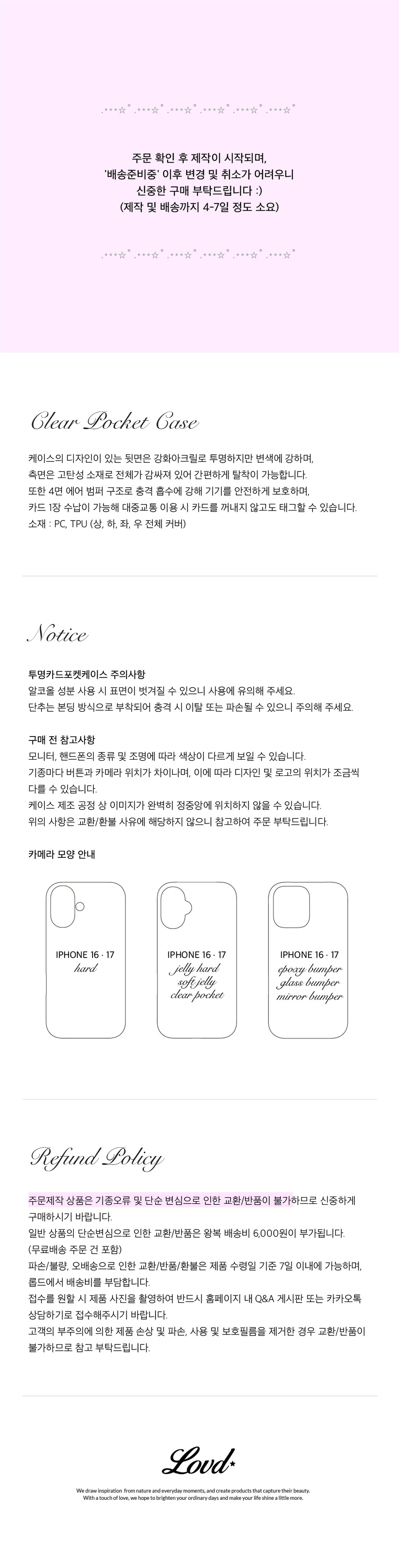 - 이후 주문 건은 5월 6일(수)부터 순차적으로 제작 및 출고될 예정이오니 여유로운 마음으로 주문 부탁 드립니다.