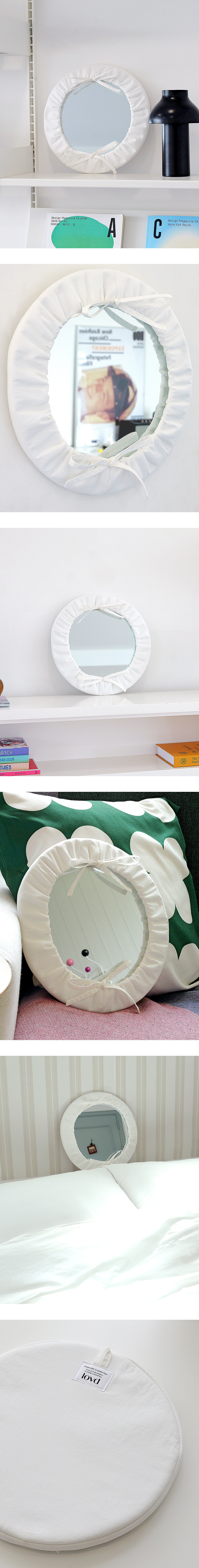 부드러운 코튼 패브릭과 거울을 결합한 디자인으로 내장된 스트링 끈을 이용하여 셔링과 리본을 연출하였으며, 내부에 접착솜을 덧대어 폭신하고 따뜻한 텍스쳐를 주었습니다.