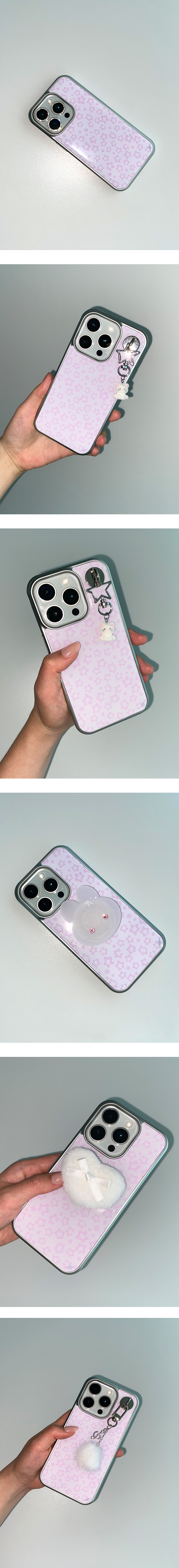 STAR LEOPARD PHONE CASE PINK (epoxy silver bumper)