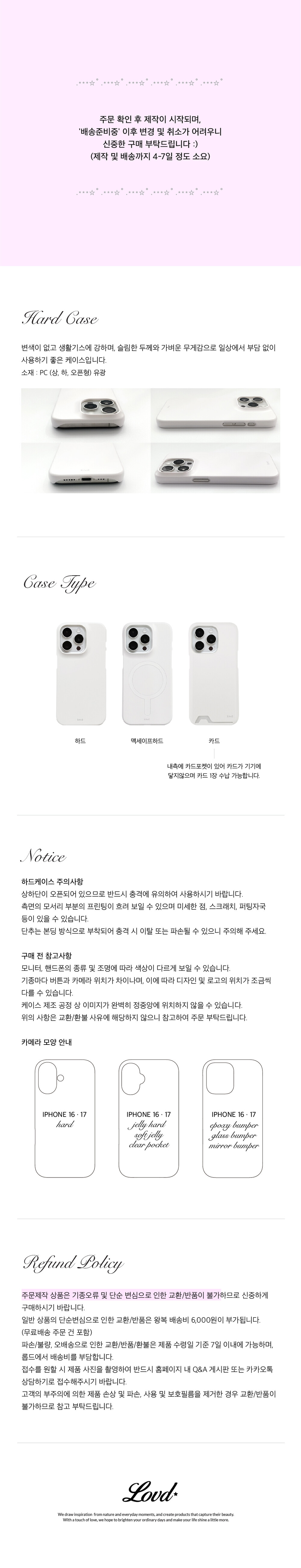 ❣️ 17pro, 17promax, 17air 기종 맥세이프 옵션은 맥세이프링과 단추부착 위치가 맞닿을 수 있어 제작이 어렵습니다 🥲